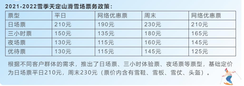 天定山滑雪场门票多少钱?