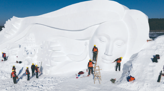 距离第23届中国长春净月潭瓦萨国际滑雪节开幕的日子越来越近,长春的室外气温也越来越低。雪雕师每天7时来到现场,在冰天雪地中一站就是10个小时,虽然身着厚重的防寒服、头戴棉帽,脸仍被寒风吹得通红,手脚也常常被冻得麻木。即便如此,他们从未停歇,目的是赶在开幕式前完成作品。“雪雕师是一个美好的职业,尤其是想到自己创作的雪雕展现在世人面前,自豪之情溢于言表。”侯杰希望通过雪雕,吸引更多的游客来到长春,感受这座城市的冰雪风情。