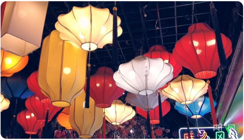 桂林路的花灯造型各异(央广网见习记者舒震 摄)