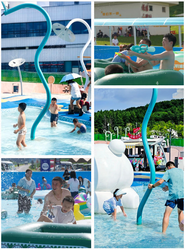 在这天然氧吧中,在灿烂的阳光下,远离城市的繁杂,沉浸在广袤森林簇拥下的山间水上乐园,各式水上游乐装置及森林动物造型将为孩子们带来最纯粹的戏水体验。