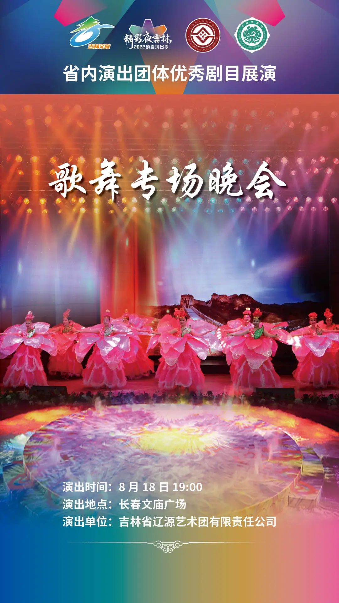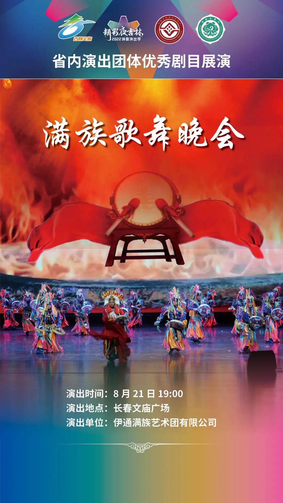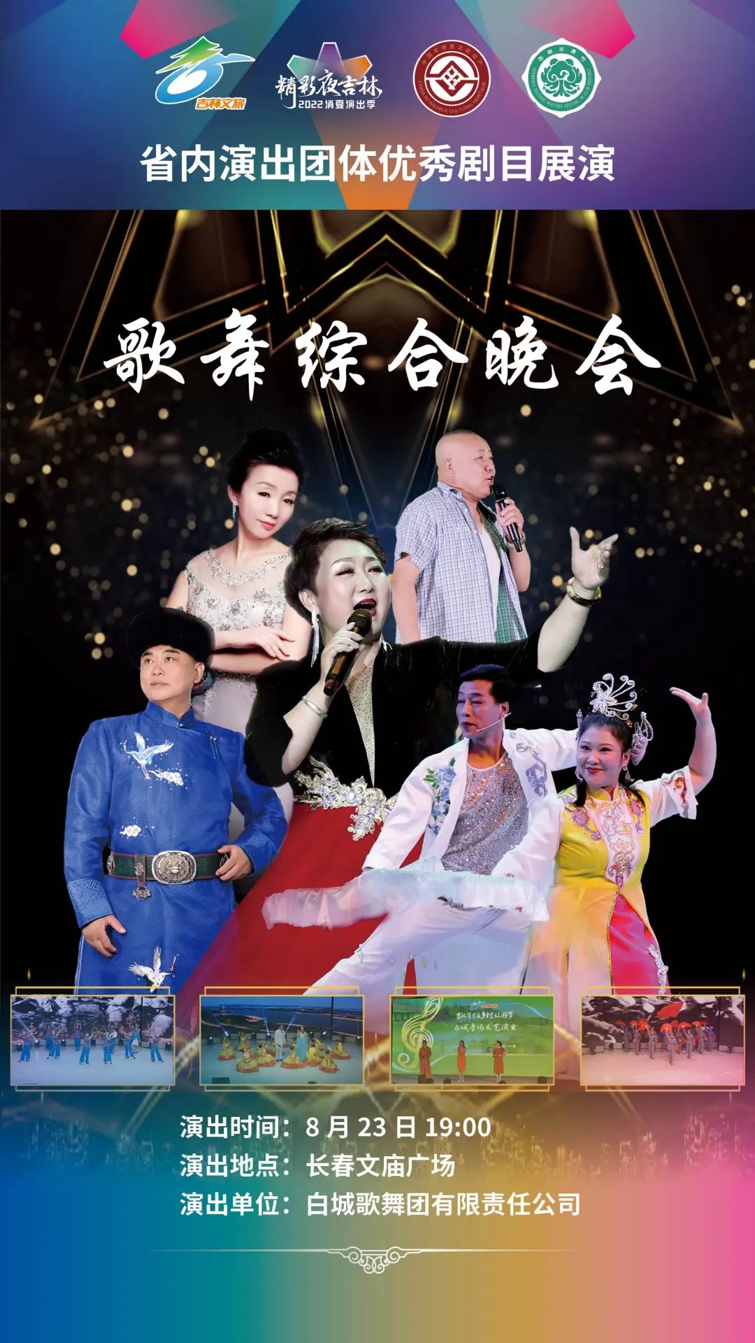 为了充分展示吉林省内各院团近年来艺术创作取得的丰硕成果,此次演出季更广泛地调动、汇集了吉林省内省、市、县三级演出团体到长春演出。8月17日至25日,长春演艺集团杂技团有限责任公司、辽源艺术团有限责任公司、前郭县民族歌舞传习中心、通化歌舞剧院有限公司、伊通满族艺术团有限公司、白山市满族歌舞团有限公司、抚松县山里红演艺有限公司、白城歌舞团有限责任公司、吉林市戏曲剧团有限责任公司将陆续登台,带来杂技、歌舞、综合晚会、戏曲等形式多样的演出;25日的闭幕式中,吉林省直文艺院团将综合上演《喜迎二十大 奋进新征程》专场演出。演出季秉承“宜融则融,能融尽融”的原则,在节目安排、现场解说上都将穿插体现当地文旅特色的内容,演出现场还将播放各地旅游宣传片,让观众领略吉林之美。
