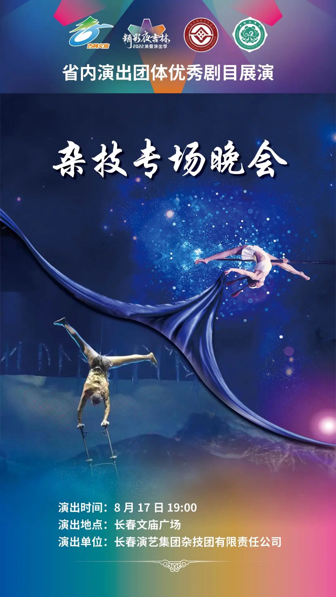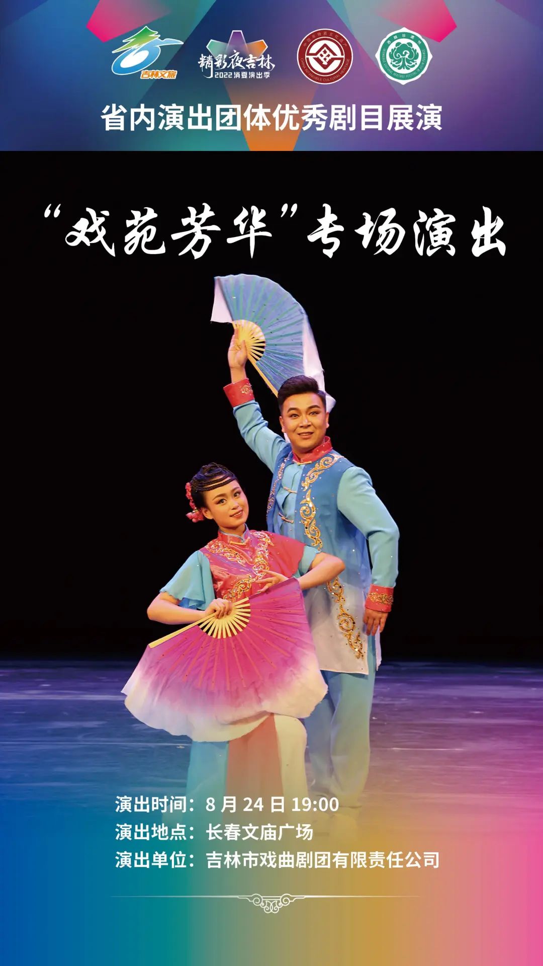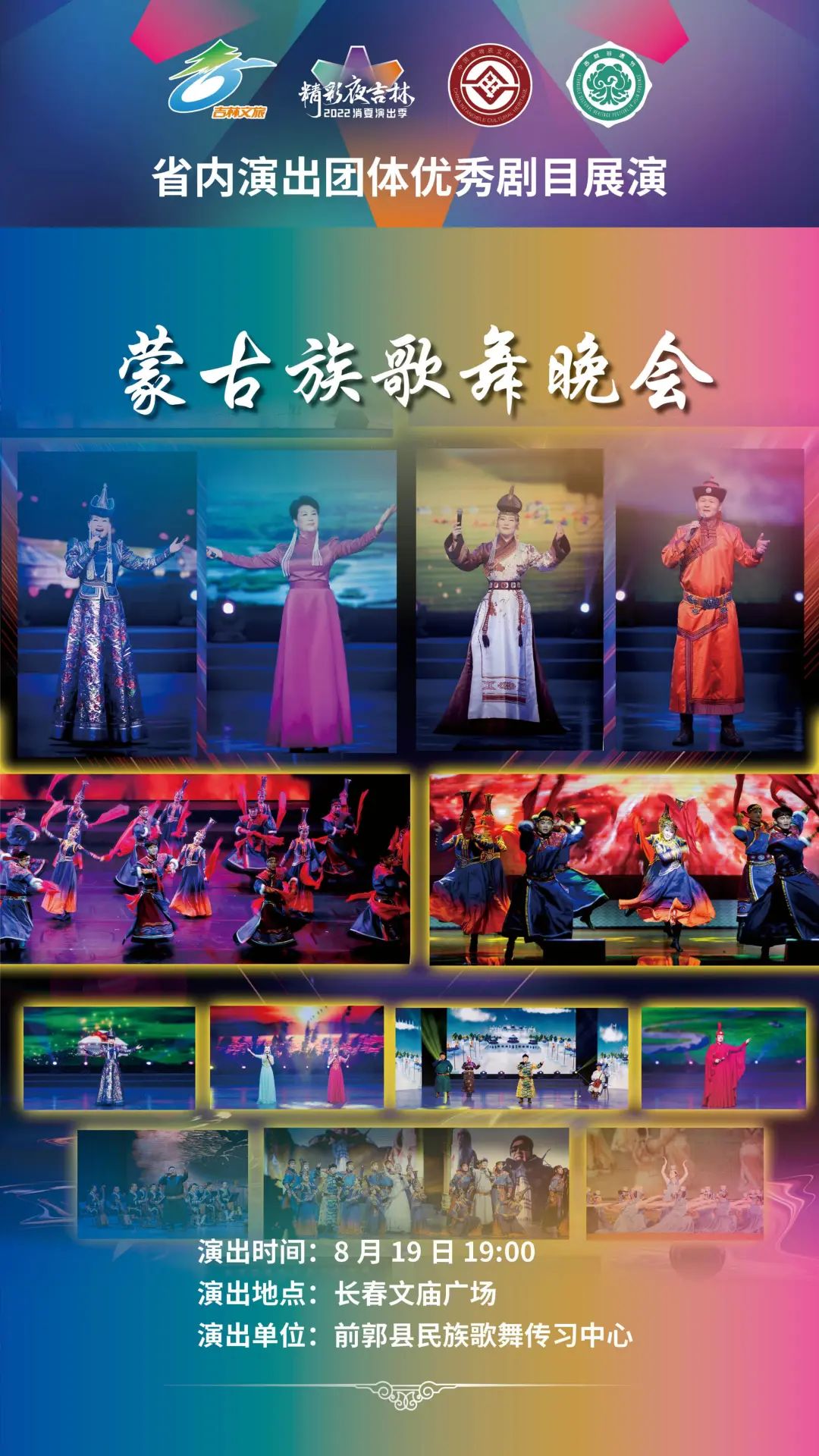 为了充分展示吉林省内各院团近年来艺术创作取得的丰硕成果,此次演出季更广泛地调动、汇集了吉林省内省、市、县三级演出团体到长春演出。8月17日至25日,长春演艺集团杂技团有限责任公司、辽源艺术团有限责任公司、前郭县民族歌舞传习中心、通化歌舞剧院有限公司、伊通满族艺术团有限公司、白山市满族歌舞团有限公司、抚松县山里红演艺有限公司、白城歌舞团有限责任公司、吉林市戏曲剧团有限责任公司将陆续登台,带来杂技、歌舞、综合晚会、戏曲等形式多样的演出;25日的闭幕式中,吉林省直文艺院团将综合上演《喜迎二十大 奋进新征程》专场演出。演出季秉承“宜融则融,能融尽融”的原则,在节目安排、现场解说上都将穿插体现当地文旅特色的内容,演出现场还将播放各地旅游宣传片,让观众领略吉林之美。