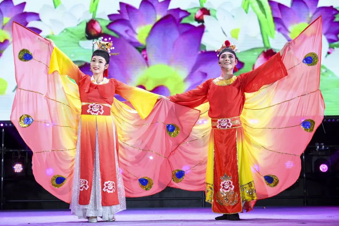火在满族儿女的眼里有着圣洁和吉祥的寓意,舞蹈《吉祥圣火》体现了满族儿女祈盼祖国繁荣昌盛,人民幸福安康的美好愿景。演出在融合了现代多元化艺术元素的新歌舞体二人转《梁祝》中落下帷幕。