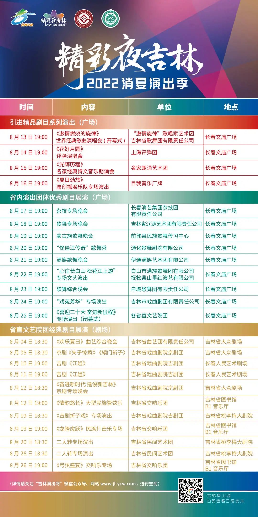1.精彩夜吉林·2022消夏演出季时间:8月13日-25日!