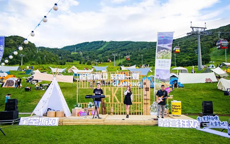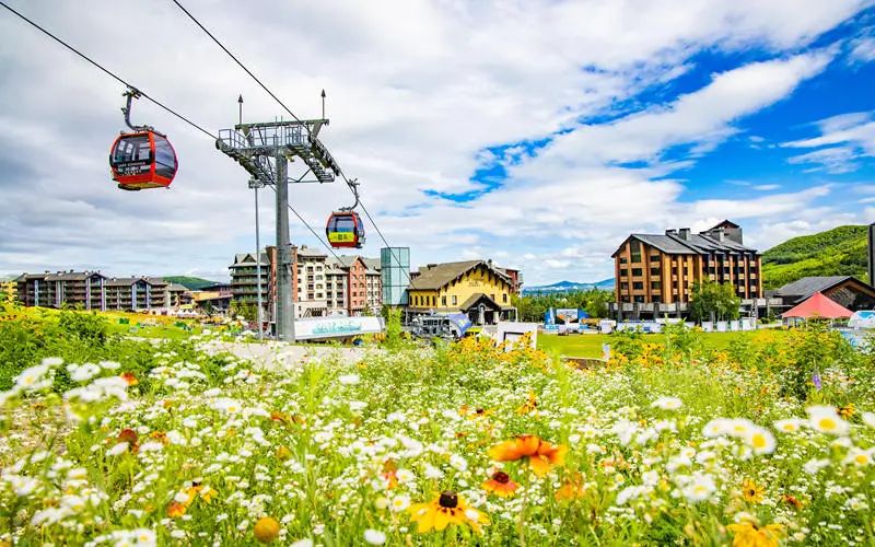 而在春季鲜花盛开时,度假区里的一顶顶帐篷便整齐有序地镶嵌在雪道变成的草地上,音乐会、山地车越野赛、登山等活动轮番上演,白天可以在山上赏花看景,夜晚可以在山下露营欢唱……今天,在滑雪场度假成为了游客们颇为喜爱的休闲方式。