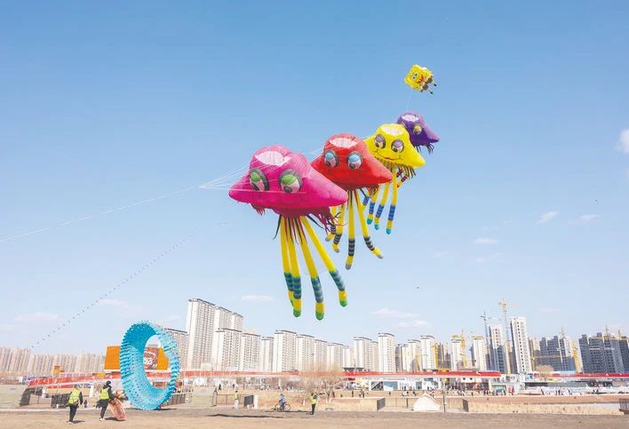 飞舞的巨型风筝为长春的天空增添了一抹艳丽色彩。