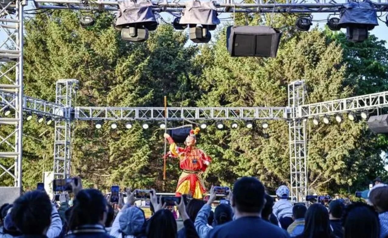 初夏傍晚,长春动植物公园一处景点被游客围得水泄不通,夕阳的柔光下,人们脸上都洋溢着快乐和轻松。现场直播大屏幕上,被“压”在“五行山”下的“孙悟空”正与一名游客互动,东北人特有的幽默,在他探出的半个身子上体现得淋漓尽致。