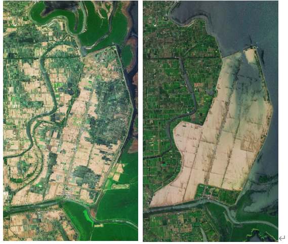 “吉林一号”拍摄的洞庭湖决堤前后对比影像