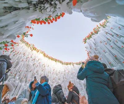 在长春市净月潭景区,北京游客薛泉正翻看手机相册,70米长、16米高的巨型雪雕,鲜艳夺目的冰封玫瑰……“每一张都很‘出片’,今晚我还想在这里体验夜滑。”薛泉说。
