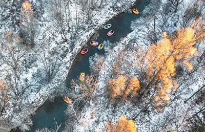 气温接近零下20摄氏度,在吉林省白山市抚松县露水河长白山狩猎度假区,四季恒温长流的碧泉河畔,一大拨游客正排队等待体验这里的漂流项目。“低头是温柔流水,抬头是美丽雾凇,远望是林海雪原。”浙江游客方圆从冲锋舟迈上河岸,手捧一杯景区提供的免费姜茶,兴高采烈地说,“不虚此行!”