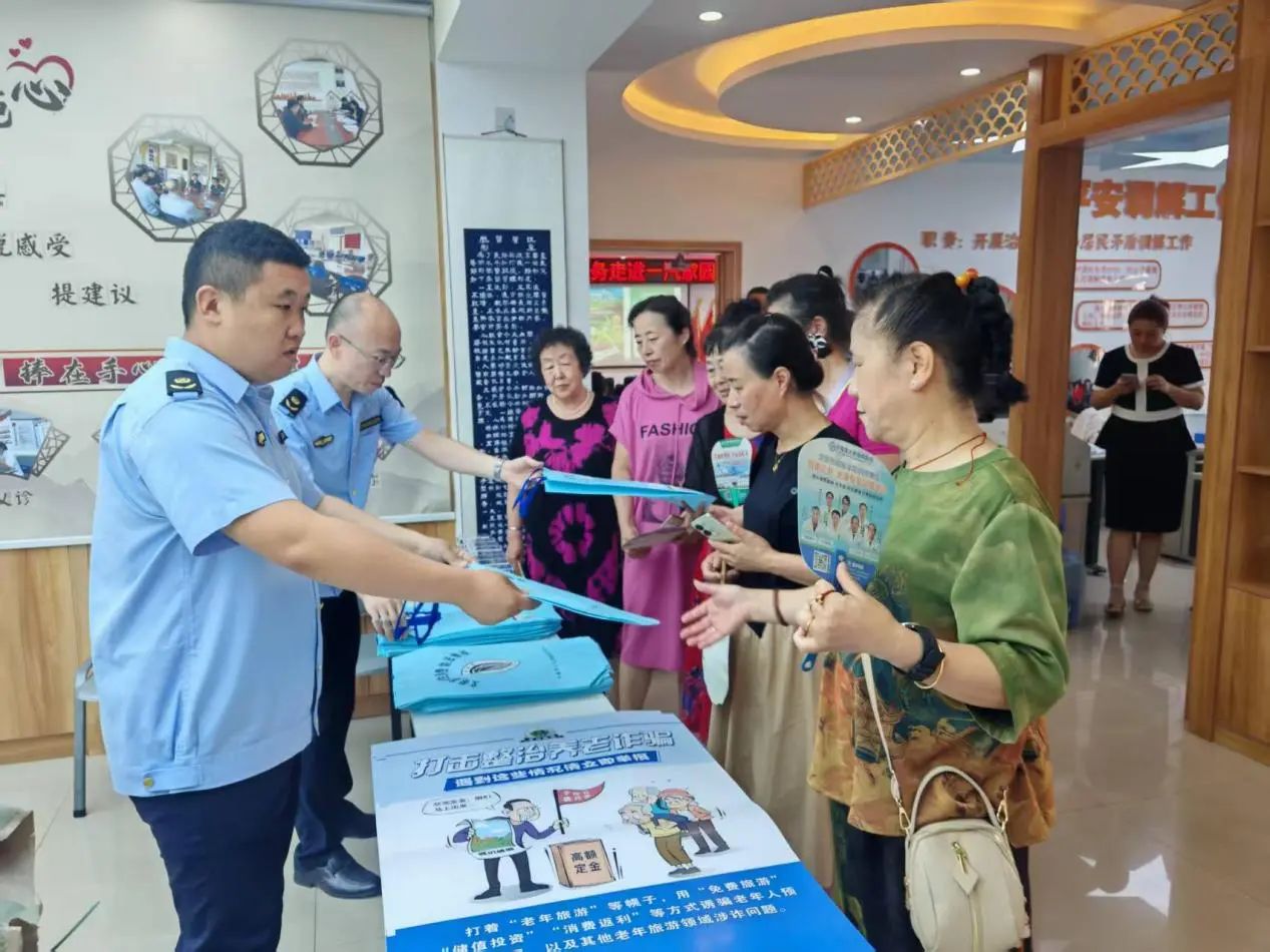 针对暑期短线游市场老年及青少年消费高峰、问题多发、投诉量大等突出问题,6月25日长春市文化市场综合行政执法支队(以下简称“长春文化执法”)联合市公安局反诈中心、旅游协会等多部门,在一汽家园社区打造“沉浸式”旅游普法课堂,以“产品供给+安全提示+服务保障”三维模式,为百余位居民送上暑期出游“全攻略”。