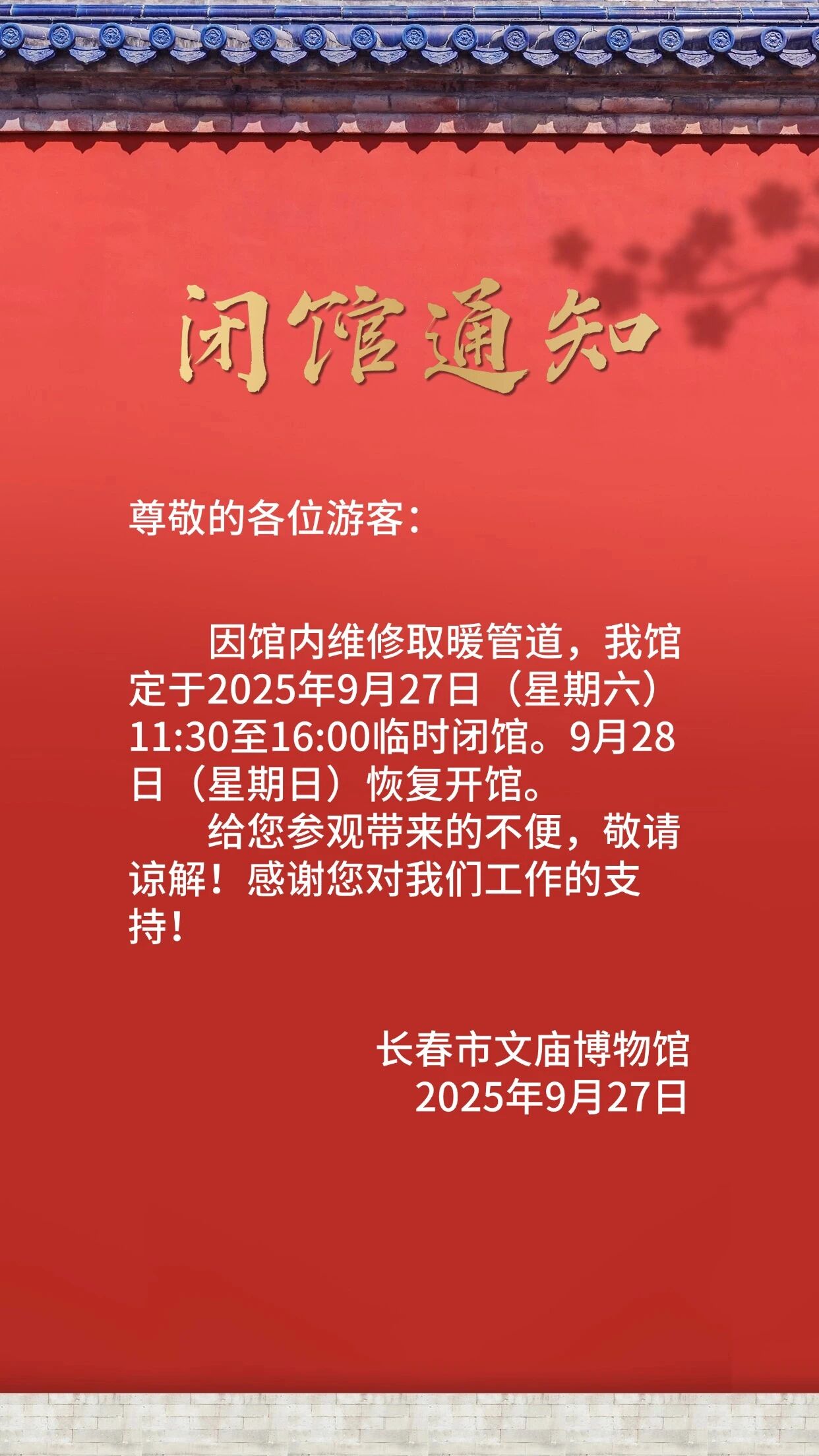 长春市文庙博物馆临时闭馆通知