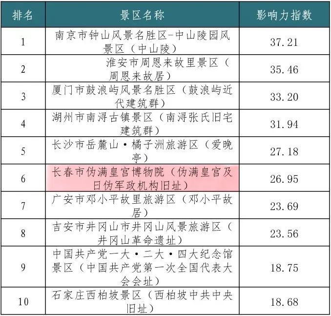 伪满皇宫博物院作为百余年来近代长春城市变迁的地标式建筑群、日本殖民统治中国东北十四年的历史见证,入选“2023年度近现代重要史迹及代表性建筑文物旅游景区综合影响力TOP10”。