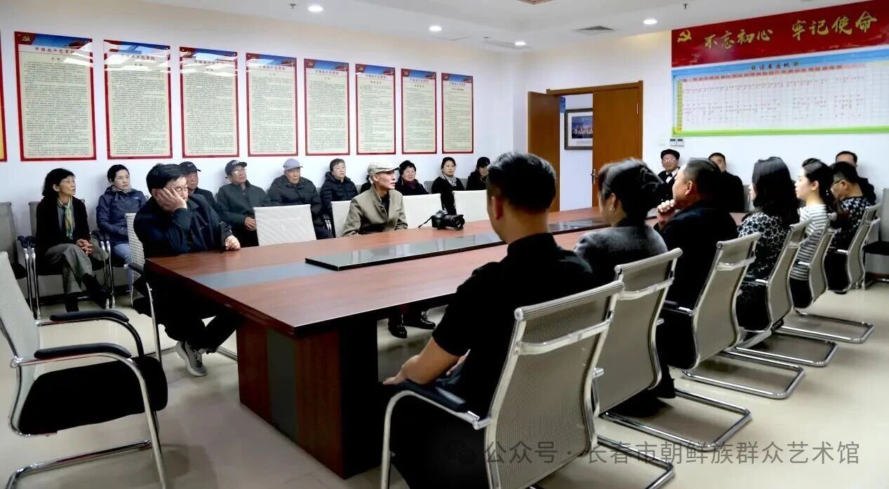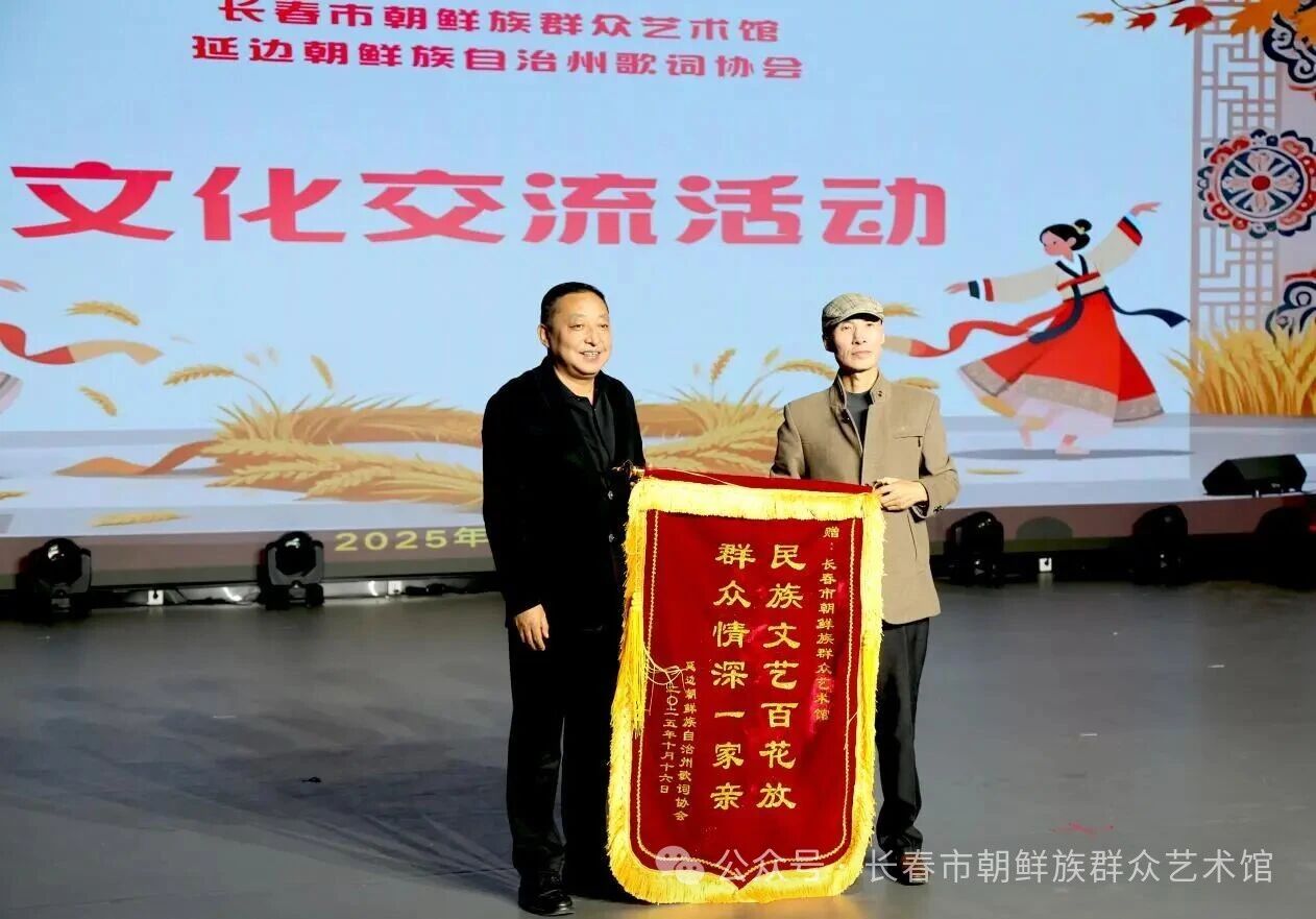 活动中,双方围绕朝鲜族传统音乐的当代转化、歌词艺术的创新路径、群众文化活动的品牌打造等核心议题展开深度对话。我馆分享了在民族非遗传承保护、群众文化工作中的实践成果,延边州歌词协会则带来了植根地域文化的原创案例,为两地后续合作筑牢了理念根基。其间,歌词协会向我馆赠送了锦旗,这份沉甸甸的心意,也为本次交流活动留下了温暖而深刻的印记。