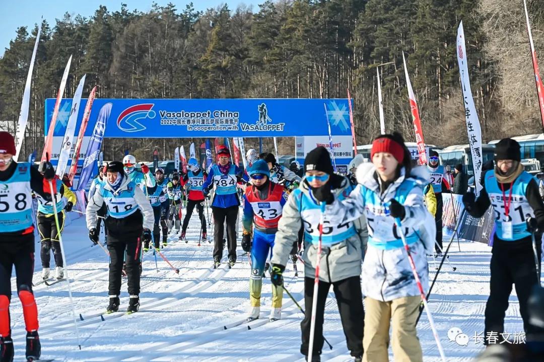 2022中国长春净月潭瓦萨国际滑雪节赛道全长25公里,选手们需要穿越净月潭冰面、森林及公路,比赛的同时也可以一览春城冬日美景。