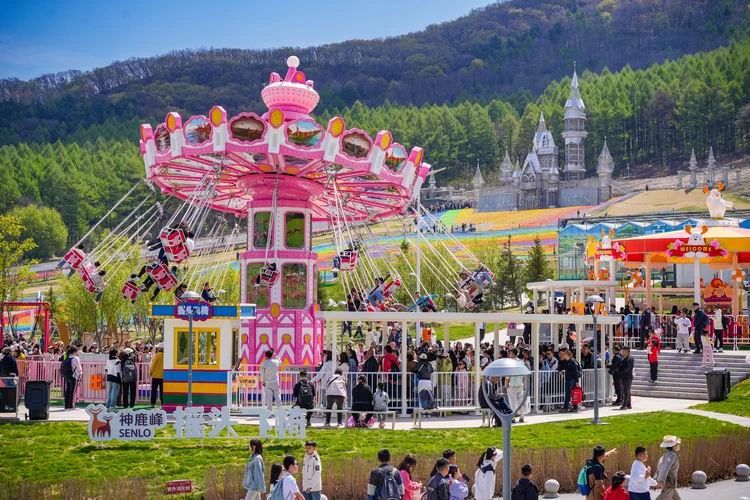 同样风景优美的神鹿峰旅游度假区也是人潮涌动。虽然5月1日早晨下起了小雨,但游客们依旧兴致勃勃。在归来镇游乐园里,孩子们的欢声笑语此起彼伏;梦幻城堡前的风车海是热门打卡地,人们纷纷摆出各种造型,定格美好瞬间;鹿鸣谷里,小鹿悠闲漫步,孩子们则捧着胡萝卜,争先恐后地喂食;最受欢迎的玻璃悬廊和天涯秋千项目,人气更是居高不下。据统计,假期首日,该景区接待游客达1.3万人。