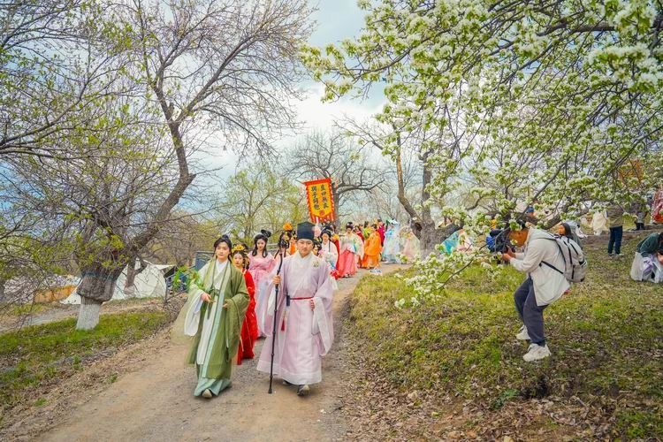 在莲花山生态旅游度假区的百年梨园,梨树迎来盛花期,洁白的梨花竞相绽放,将梨园装点成一片梦幻的花海。假日里,吉林省第三届汉服花朝游园会暨长春莲花山梨园汉服文化季也在此华丽上演。近百名汉服爱好者带来国风花神巡游,为百年梨园增添了一抹古韵。家住宽城区的徐薇特意开车前来赏花。“在这里欣赏梨花,与在市区的感受截然不同,给人带来一种宁静悠远的田园之美。”徐薇说,她和家人打算利用假期再去一趟天定山旅游度假区,在体验露营中享受悠闲的户外时光。