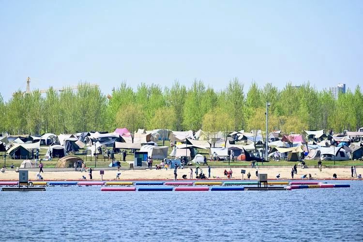 “五一”假期,风和日丽,南溪湿地公园湖水中游船穿行,公园露营区更是热闹,许多市民撑起帐篷,搭起天幕,用露营的方式享受美好的假期