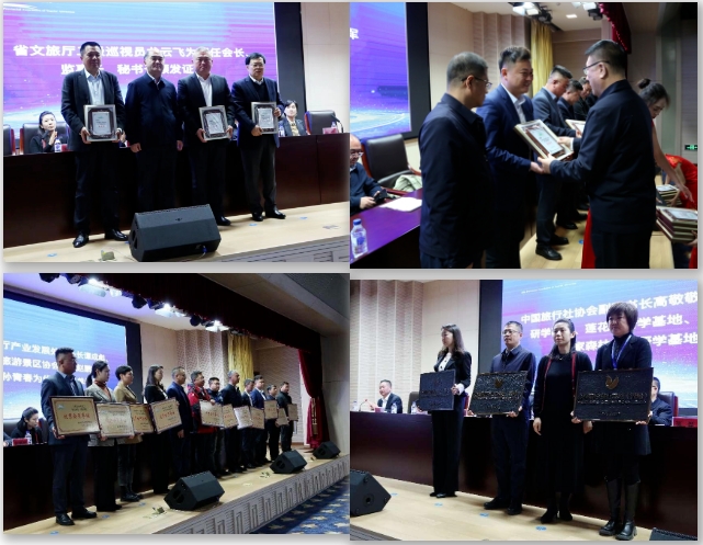 会议举行了颁发证书、授牌和签约仪式。由省文旅厅、中国旅游景区协会、中国旅行社协会、省旅游景区协会的领导分别为新任会长、监事长、副会长、秘书长和专家咨询委员会主任、副主任颁发证书;为长春净月潭旅游发展集团、吉林省长白山景区管理有限公司等45家优秀会员单位颁发奖牌;为新评定的吉林龙湾群国家森林公园研学基地、东华知行研学基地、莲花山研学基地颁发“全国研学旅行基地(营地)”标志牌。