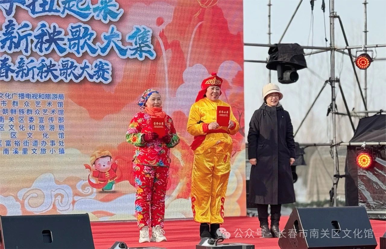 南关区各街(乡)积极选拔、推荐,由南岭街道恒安社区、长春市南关区龙狮协会、南关区富裕街道富裕村民委员会、东莱南街社区选送的四支团队来到城投南溪里文旅小镇的复赛舞台。活动现场歌如潮,花似海;鼓阵阵,舞翩翩。各参赛团队精神抖擞,舞出了传统秧歌的特色,扭出了新秧歌的激情,演绎了一场精彩的视觉文化盛宴,展现了东北民间文化艺术的独特魅力。助演男中音歌手李明骏带来《灯火里的中国》等经典歌曲演唱更是将活动现场氛围推向高潮。比赛现场评选出优秀组织奖、最佳表演奖及优秀表演奖,由南关区政府副区长刘晓龙,南关区文旅局局长温永军和南关区文旅局副局长张悦为获奖团队颁发证书。