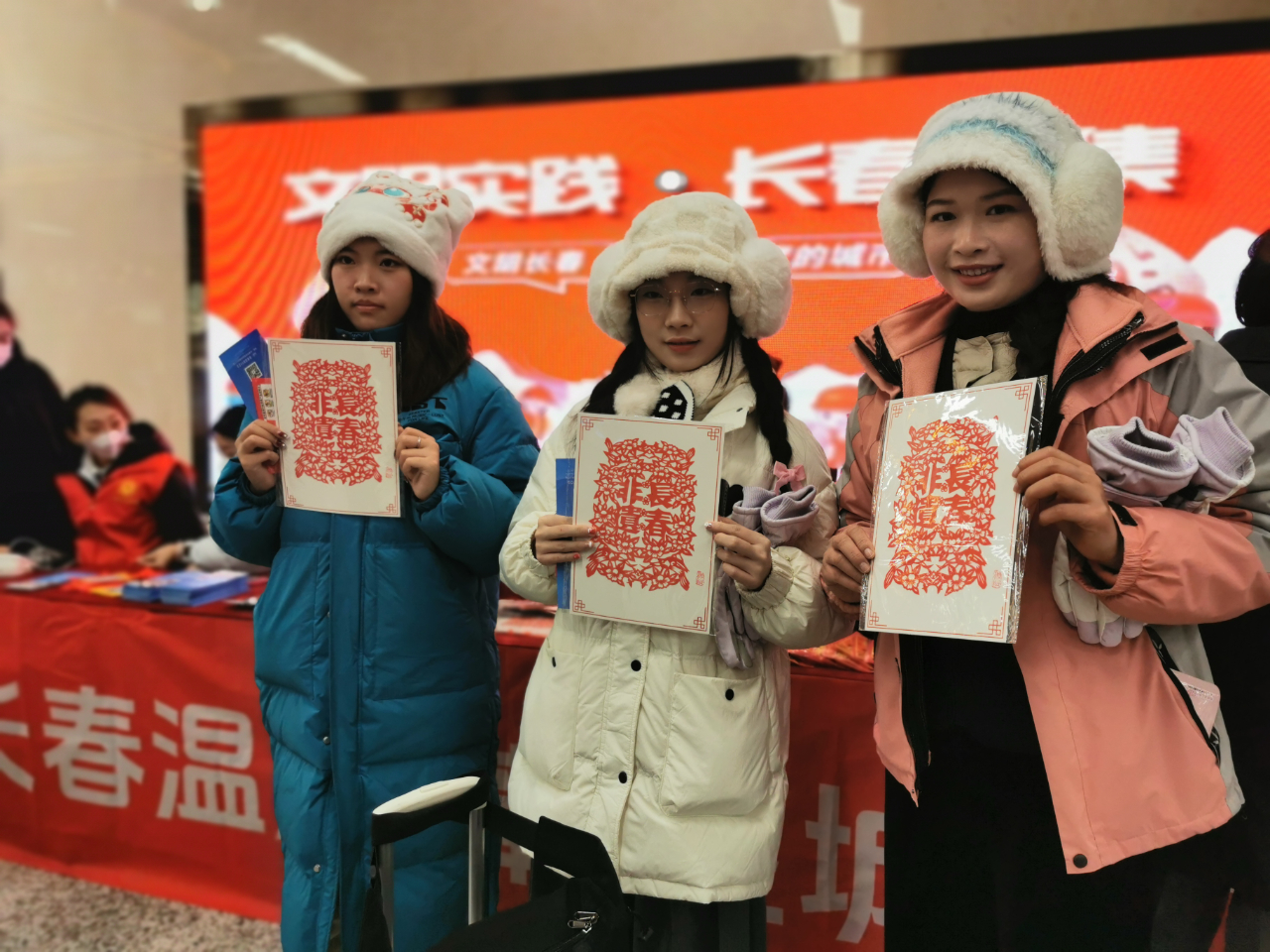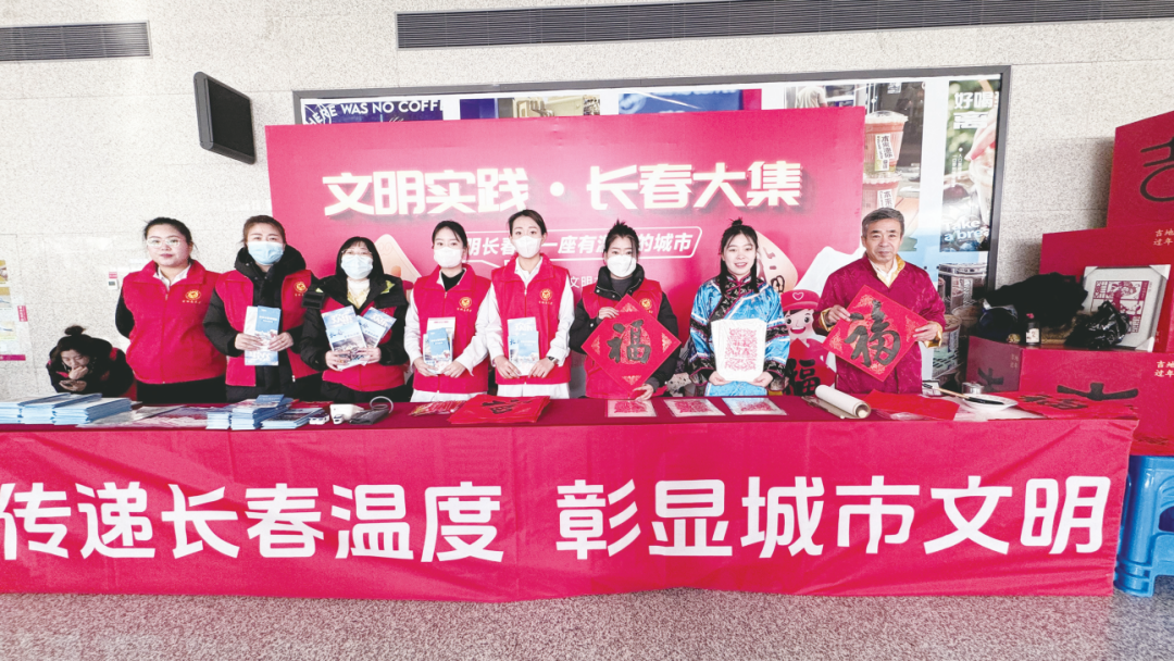 在长春火车站设置志愿服务点,服务往来游客。“宽城好人”组建车队在车站、景点接送来往游客,为来长春的游客提供优质暖心的服务。春节期间,宽城区新时代文明实践中心还举办了传统文化习俗、满族秧歌进景区展演,以及送春联、展非遗等活动,为长春文旅品牌增加含金量。