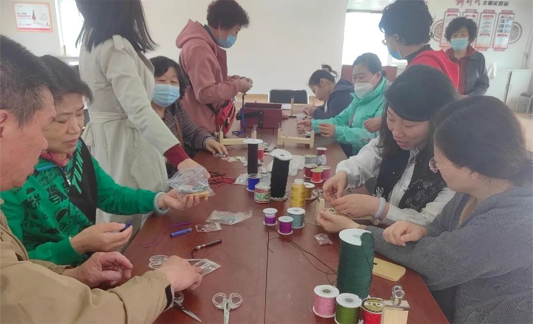 朱砂手串作为传统手工艺品,具有深厚的文化内涵和美学价值。手工艺老师向居民介绍了朱砂的药物作用与功效,并指导大家如何穿搭珠子,现场教学结绳方法。在老师的指导下,居民们根据自己的个性与喜好,将朱砂颗粒和各种小饰品搭配起来,最终完成了一串串“私人定制”的手串。