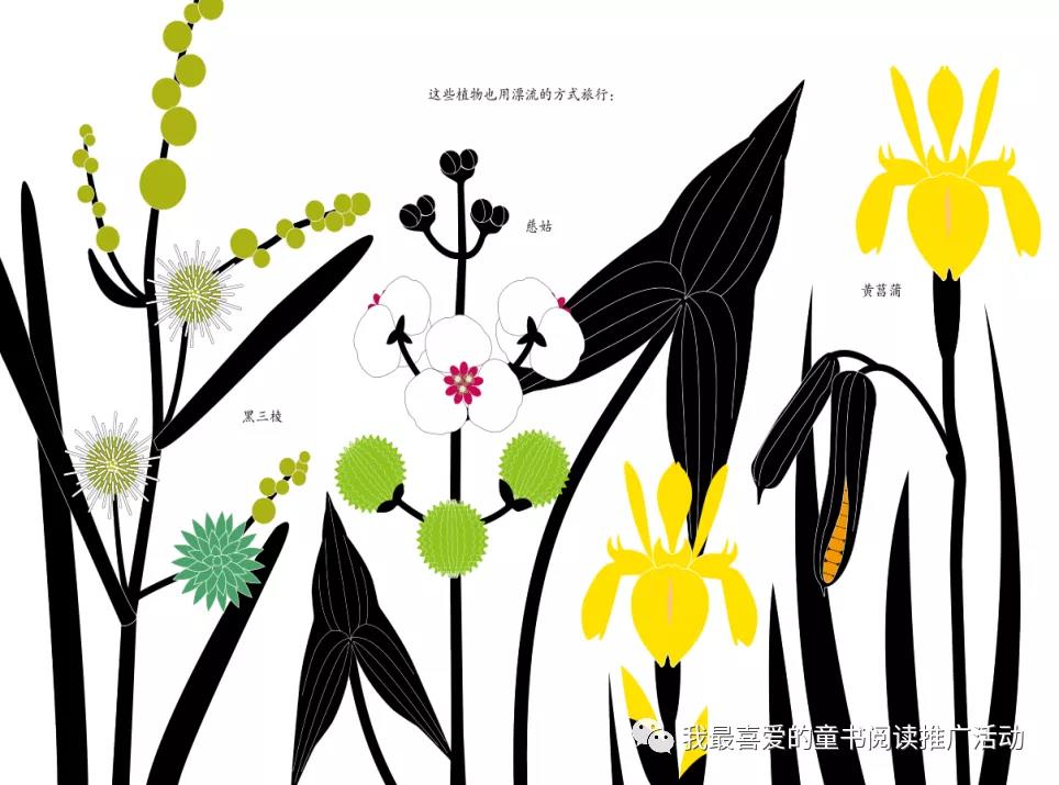 “掉落”让植物的果实开启一场旅程,让它的种子在新的角落生根发芽。除了“掉落”,作者埃米莉·瓦斯特一共为我们描述了植物旅行的10种方式。也就是植物传播种子的10种方式。它们分别是:飞行、爬行、掉落、钩挂、被吃掉、弹射、被掩埋、漂流、行走、被栽种。