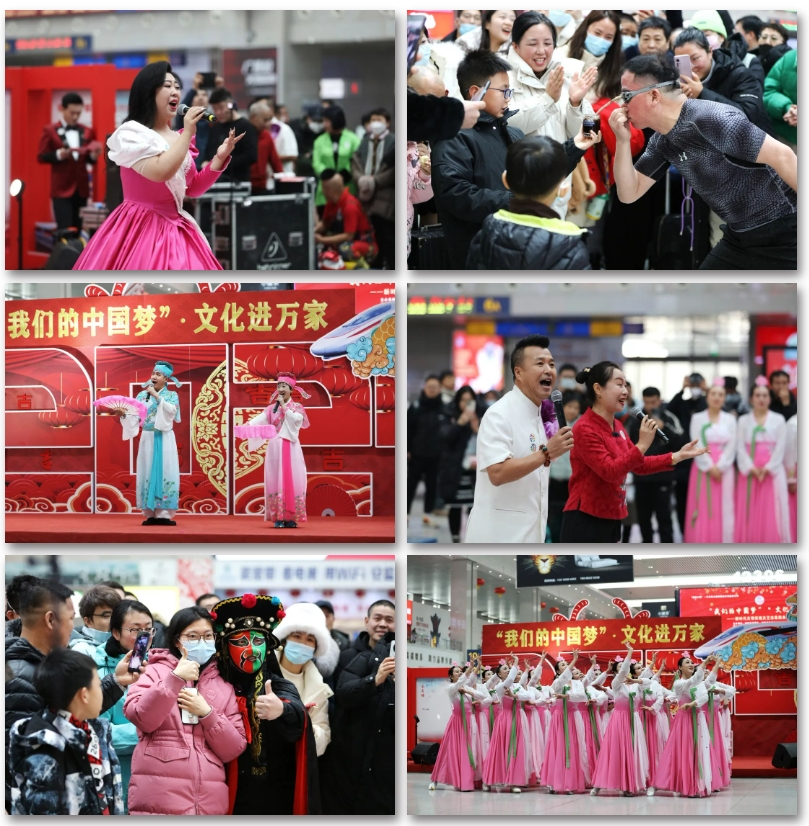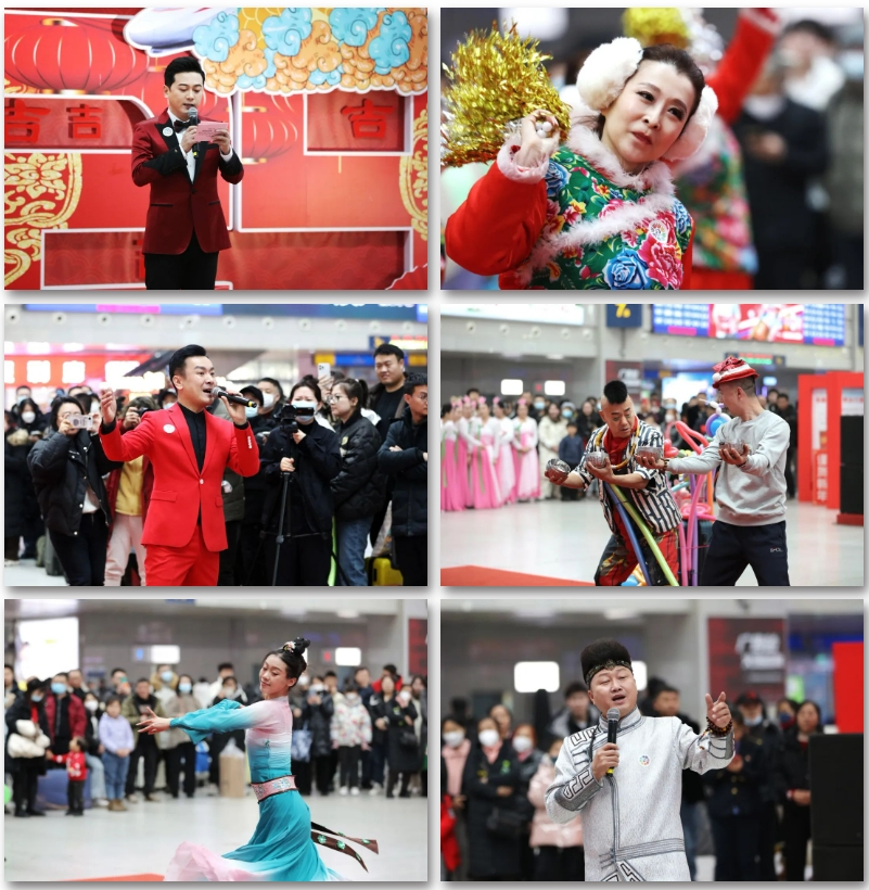 “好运全都来,火力全都开。祝您笑口常常开,迎接财源滚滚来……”2月5日,长春火车站内气氛热烈,暖意浓浓,现场气氛充满年味儿,十分热闹。由吉林省文明办、吉林省文学艺术界联合会联合主办,吉林省文艺志愿服务中心承办的“我们的中国梦”文化进万家——新时代文明实践文艺志愿服务助力吉林冰雪旅游走进长春火车站候车大厅演出精彩上演,全方位体现吉林人民迎客待客留客的热情和心情,以文艺志愿者的表演和书法家志愿者的作品共同营造温馨春运,和谐出行的春运氛围,用文艺演出的形式倡导文明出行,让这个春节更有温度。