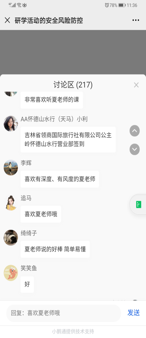学员听众反响强烈,纷纷表示收获颇多,对今年导游等级考试备考及日后研学工作、文旅工作开展有很大帮助。课堂上提问答疑,互动交流,切磋技艺,气氛热烈。在培训成果展示环节学员们从开始对各自单位基本的导游讲解、景区推介逐步转变为模块完整、内容丰富的研学课程展示。