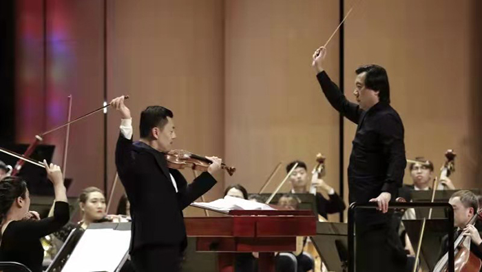 随后上演的《B小调第三小提琴协奏曲》,是圣-桑三部小提琴协奏曲中最为杰出的一部。长影乐团特邀湖南潇湘爱乐乐团艺术总监、小提琴演奏家柴亮担任小提琴独奏。整部作品主题鲜明、突出,华美而富于诗意,第一、三乐章犹如激情的高山,第二乐章则是平静的湖泊,宁静祥和。乐曲中众多富于技巧性的乐段,为演奏家提供了充分的展现空间。