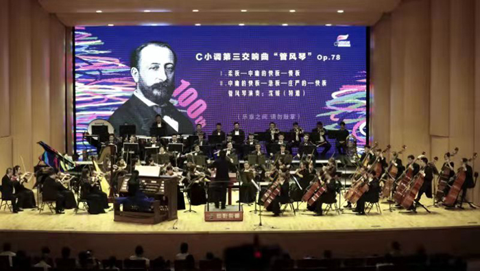 音乐会下半场,圣-桑的另一部得意之作《C小调第三交响曲“管风琴”》上演。长影乐团首次将有着两千多年历史的古老乐器管风琴搬上了长影音乐厅舞台,并特邀世界首位电子管风琴博士、柏林艺术大学第一位华人管风琴博士、管风琴演奏家沈媛担任独奏,成为本场音乐会的最大亮点。乐曲洋溢着浓烈的浪漫主义特色,沈媛与长影乐团默契配合,在演奏中充分调动起“乐器之王”管风琴的宏大感染力,恢弘的声音效果成为乐曲的点睛之笔。伴随着管风琴震撼人心的轰鸣,整场演出的气氛也达到了高潮。现场响起雷鸣般的掌声,向所有带来精彩演出的艺术家们送上由衷的敬意。