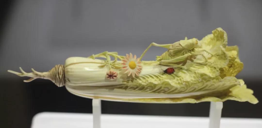 象牙白菜,论起逼真程度,比翠玉白菜也是有过之而无不及。