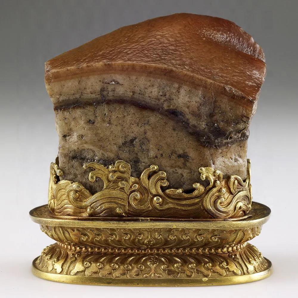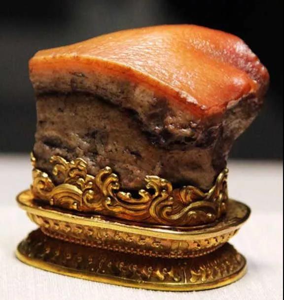 所谓“东坡肉”,则是外形酷似红烧肉的玉石雕刻。