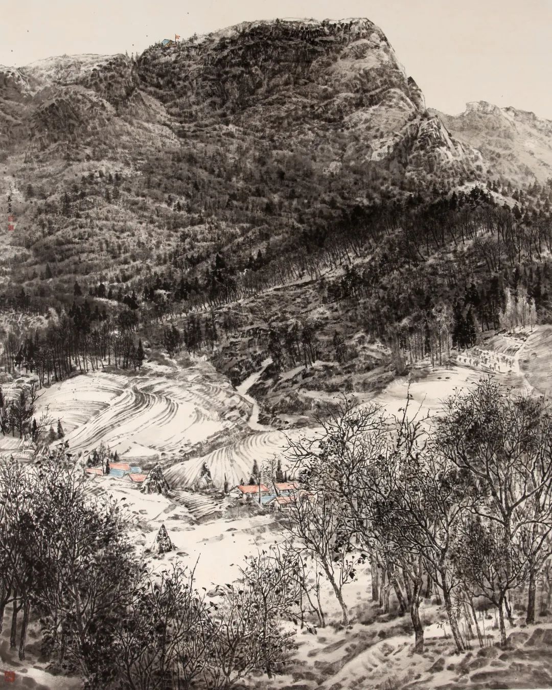吉林省美术馆以“雪满江山”为题,展出张春玉冰雪题材国画作品50余幅,用精妙的笔墨,细细讲述吉林冰雪的文化魅力。“一方山水养育一方人”,张春玉笔下的雪景,既有中国画的传统元素,承载着艺术家对自然的感悟,也展示出吉林浓郁的地域风情。他将美好的寓意和祝福赋予到冰雪元素中,笔墨细腻润泽,画面疏朗有致,用墨与留白虚实结合、相互渲染。
