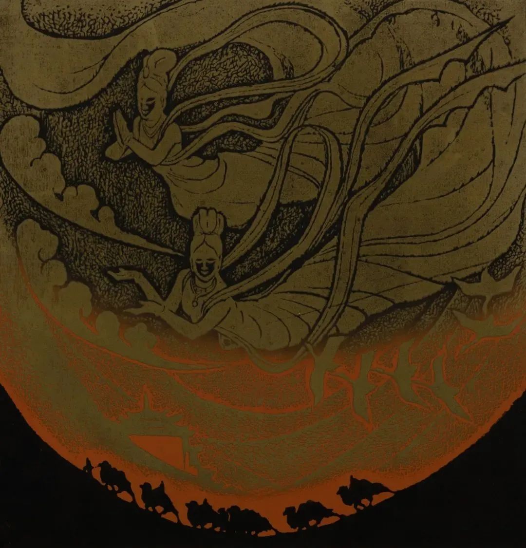 ▲版画-敦煌之梦