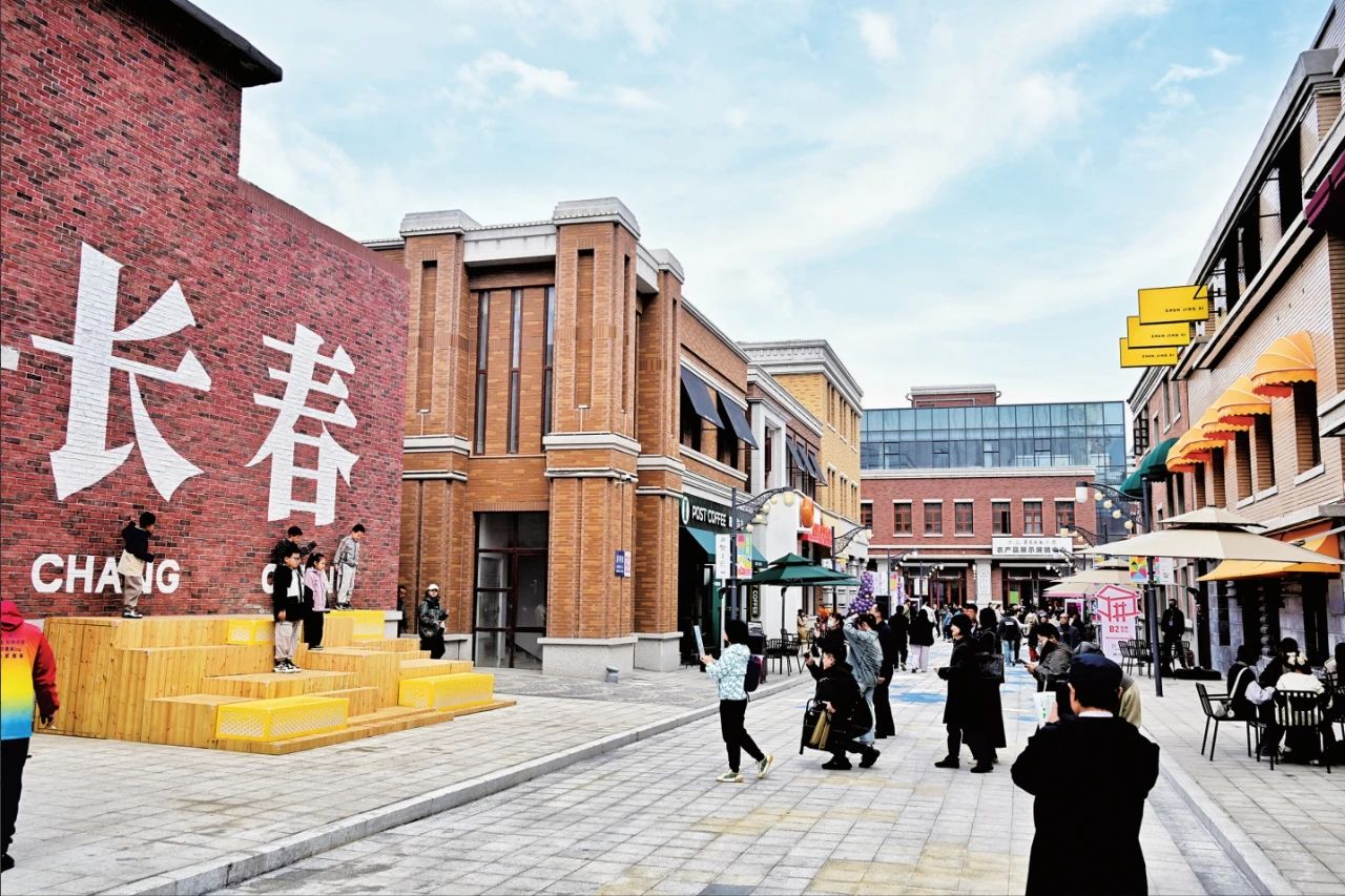 艺术与历史的碰撞不止于展厅。咖啡市集里,文创品牌将“冰雪”“电影”等元素印在杯套上;街区内,偌大的“长春”二字印在墙上,吸引年轻人纷纷打卡拍照……作为长春首个建成运营的历史文化街区,北京大街西历史文化街区在4.5万平方米范围内完整保留了百年折中主义建筑风貌,通过“修缮17栋+新建9栋”的活化模式,既守护了城市记忆,又注入了现代活力。