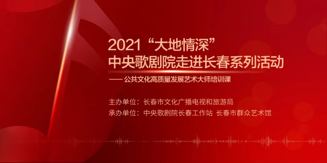 为贯彻落实省委书记景俊海在文化艺术界助力吉林振兴发展座谈会上的讲话精神,为新时代吉林全面振兴全方位振兴营造浓厚氛围、集聚旺盛人气、汇集强大力量,让人民群众享受到更高质量的文化生活,深入实施文化强省战略,赋能长春城市高质量发展,助力长春现代化都市圈建设,长春市文广旅局主动与中央歌剧院对接,合作建立了中央歌剧院公共文化高质量发展服务中心长春工作站。工作站按照2021“大地情深”主题活动要求,邀请中央歌剧院公共文化高质量发展艺术大师来长培训,是2021“大地情深”中央歌剧院走进长春系列活动中的重要组成部分。